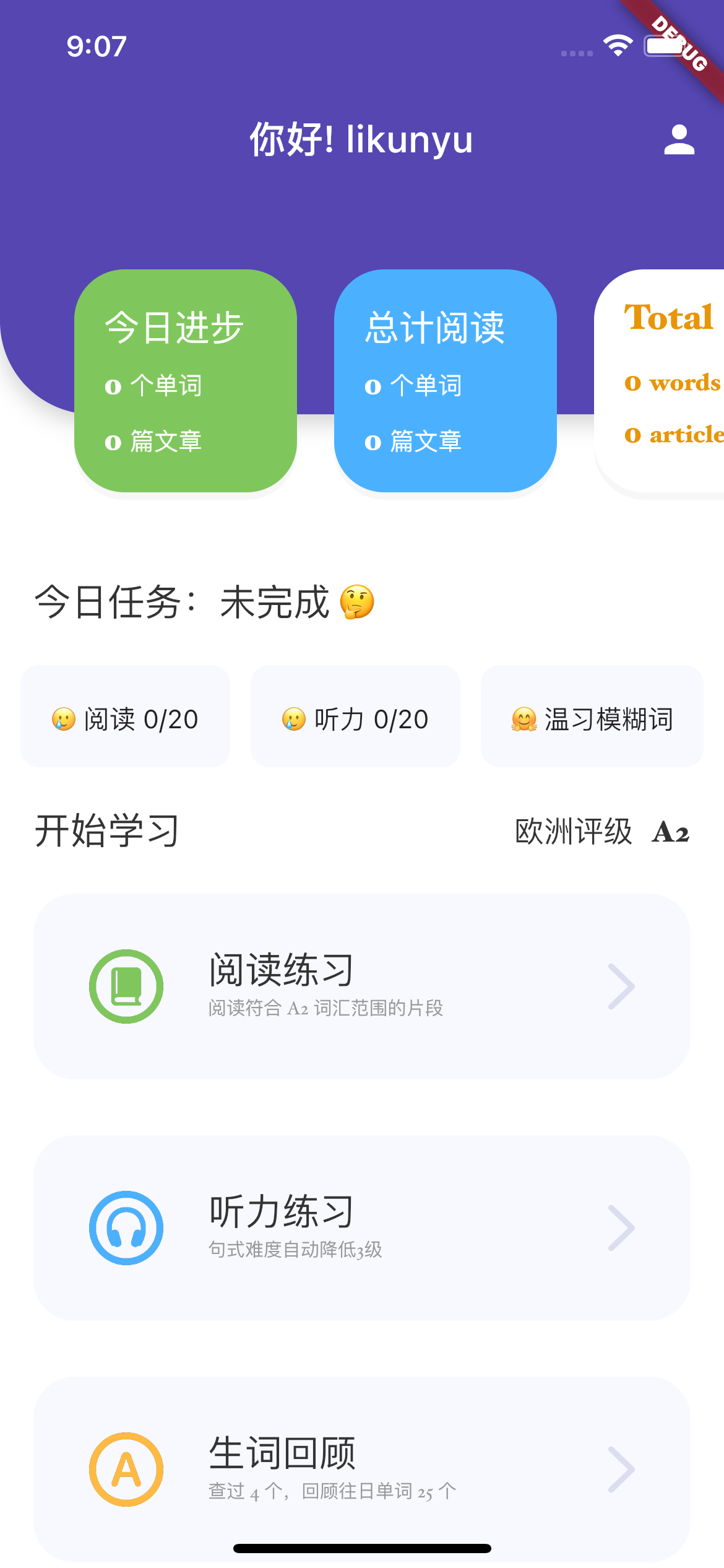 从你现在的词汇量触发,总是能推荐你能看得懂的内容。10%以内的生词,让你进步的轻松,学习的无压力。