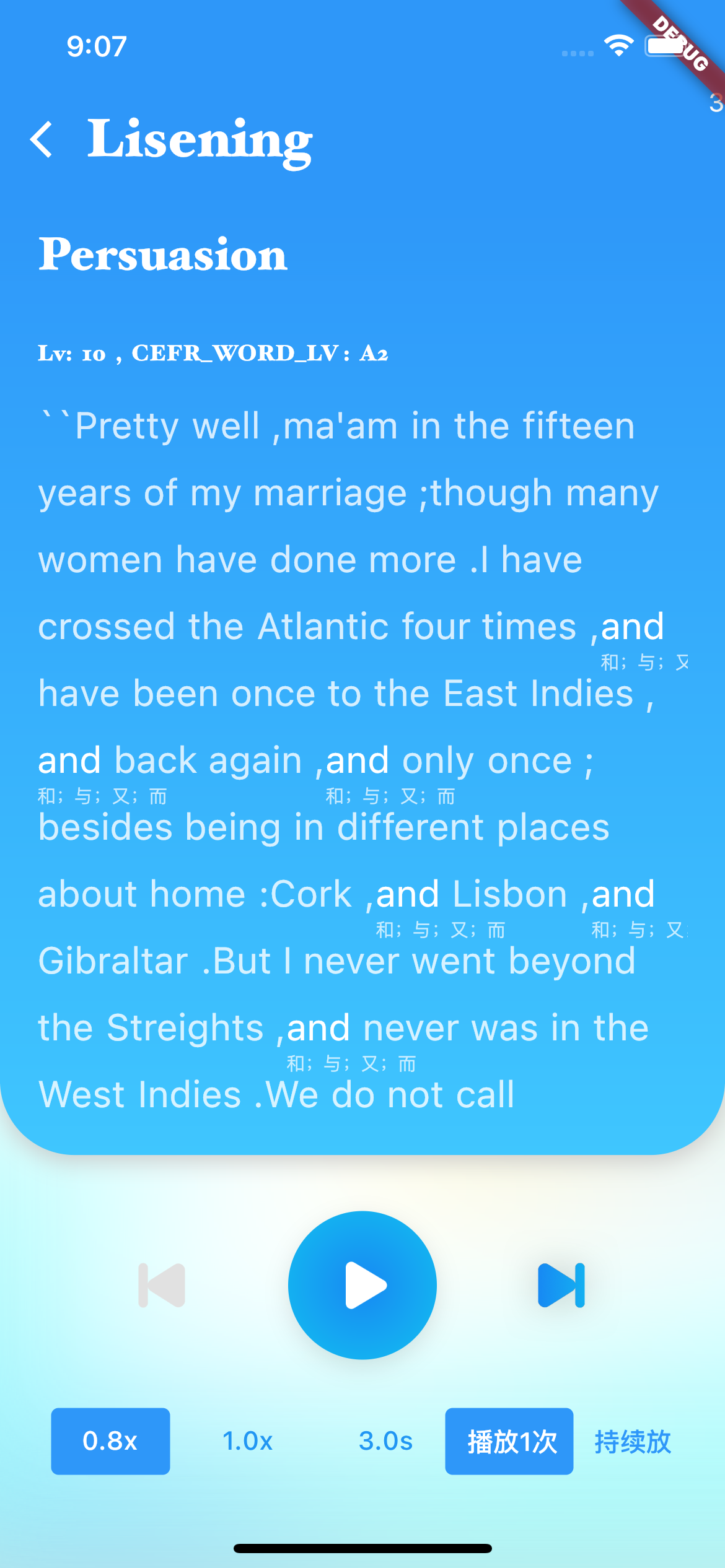 好段落,反复听,慢慢听。根据第二语言学习者的特点,App 会根据你的词汇及阅读难度,自动调整听力难度。让本来更弱的听力能力,也能听得懂!听得懂,才能沉浸,沉浸才能习得!